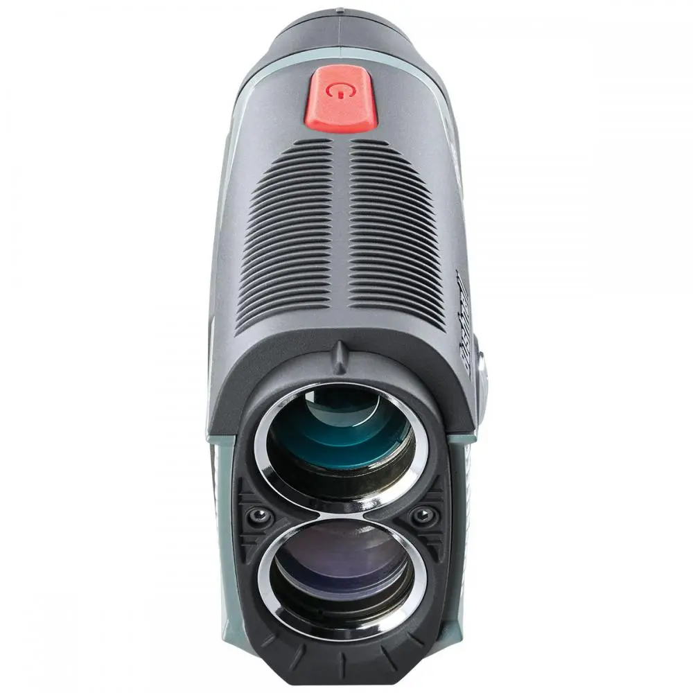 The new Tour V5 rangefinders feature Bushnellメs モBITEヤ technology. The BITE magnetic mount allows the laser rangefinder to be secured to a golf cart without the need for any aftermarket accessories or to have it in and out of the bag. Tour V5 is the game’s most dominant advantage, and it fits in the palm of your hand and packs 1300-yard/ 1188-meter range finding capability into a compact, ergonomically designed custom high level grip. Powered by a 3-volt battery, the ultra-compact Tour V5 boasts a 6x magnification and features a rubber armoring, making it easy to grip, weatherproof and also durable.