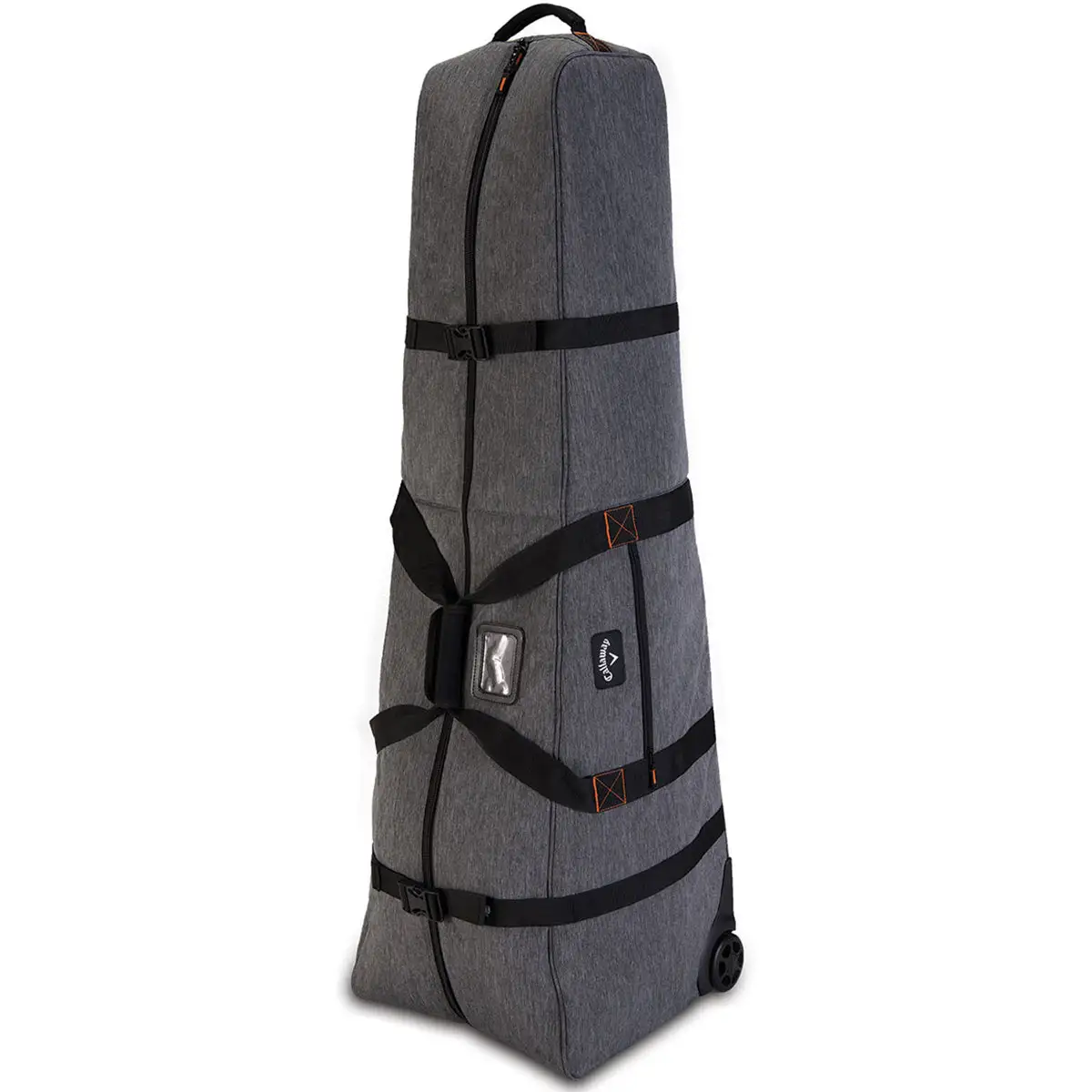 The Callaway Clubhouse travel cover will ensure your clubs are ready to easily transport with a neoprene comfort grip handle and reinforced wheel base. For easy access to your clubs the cover features exterior quick release tie downs and has an internal shoe pocket. Finer details include a business card identification holder to allow you to identify your bag after arriving at your destination.
