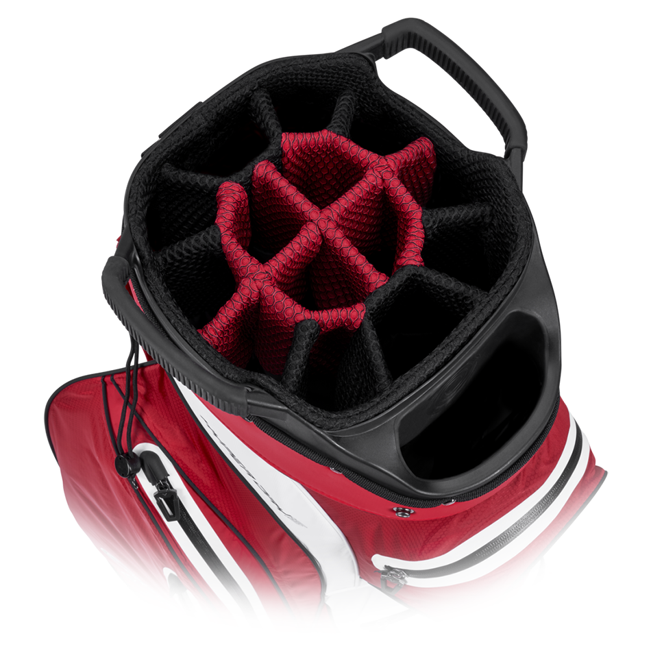 The Hyper Dry Cart Bag from Callaway is designed to fill all requirements for golfers, while offering 100% waterproof protection. Featuring a new 15 way friendly divider system with 15 individual length dividers and an integrated TPE putter section. The Hyper Dry 15 Cart bag also has an ‘E’ trolley friendly base which allows the bag to fit perfectly on either push/pull or electric trolleys. The bag features 9 waterproof pockets which include and range of valuables pockets, cooler pocket, full length pockets & more.