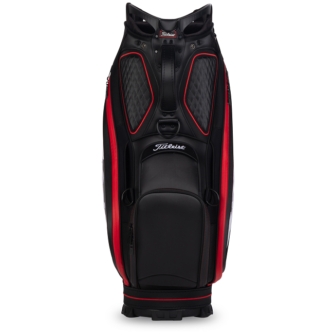 The Titleist Jet Black Tour Bag is constructed with durable materials and quilted highlights. The Jet Black Tour Bag features a 5-way top cuff for easy golf club storage in the bag and benefits from a total of 10 pockets.Â